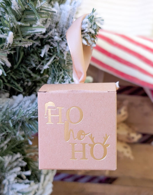 Small Brown 'Ho Ho Ho' Gift Box Filled With Small Chicken & Veggie Christmas Trees