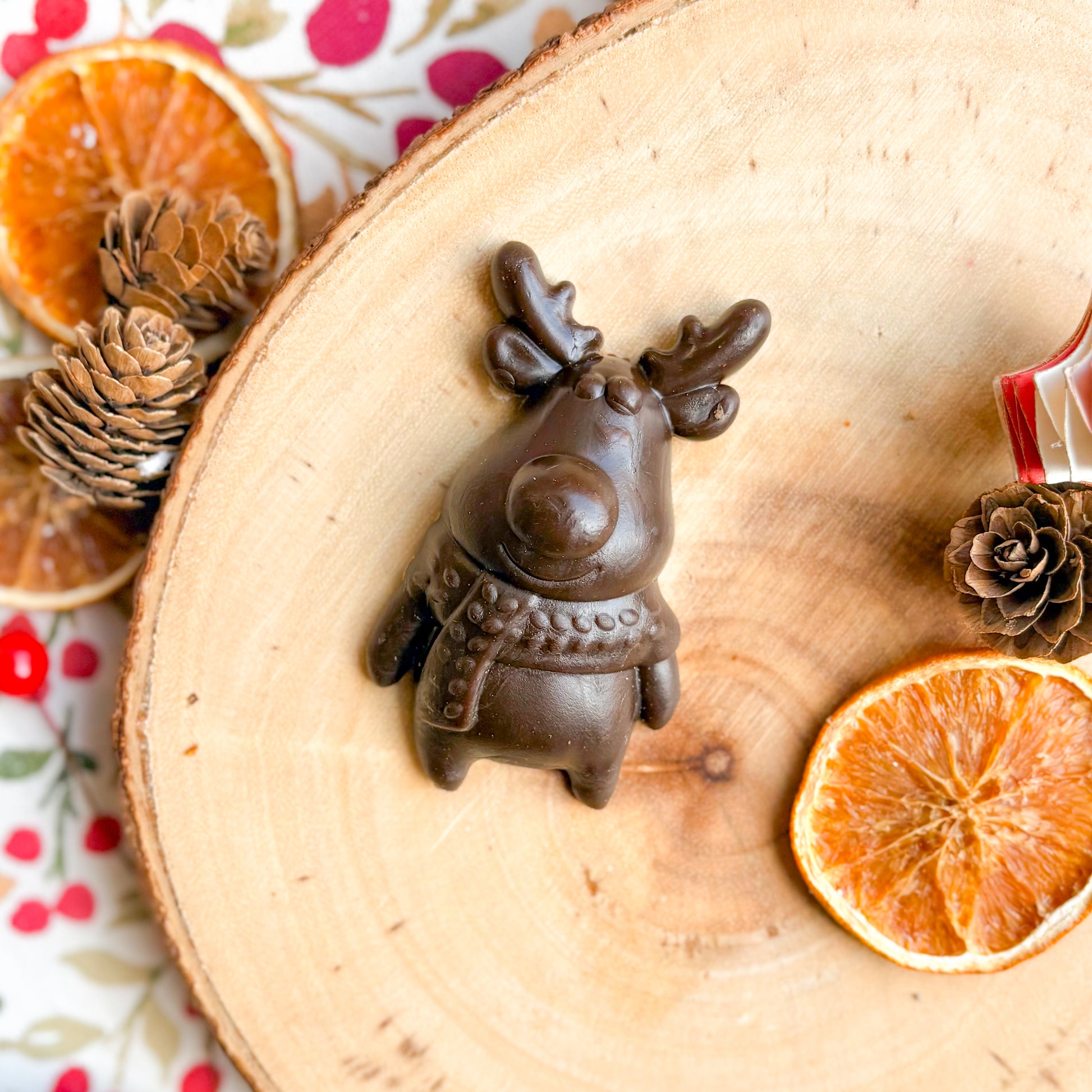 Carob Reindeer: Pea starch, sweet potato starch, chicken, vegetable glycerine, carob, calcium carbonate, flaxseed oil, plain caramel.