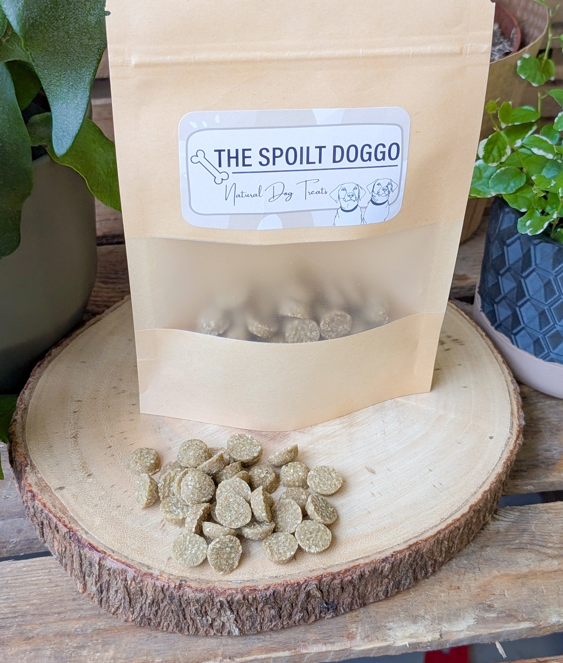 Treat your doggo guilt free with our Honey Beef Nibbles. These soft-baked, grain-free bites are perfect for rewarding good behaviour or simply sharing a moment of tasty delight. At only 2 kcal per treat, they’re ideal for frequent rewards without overdoing it.