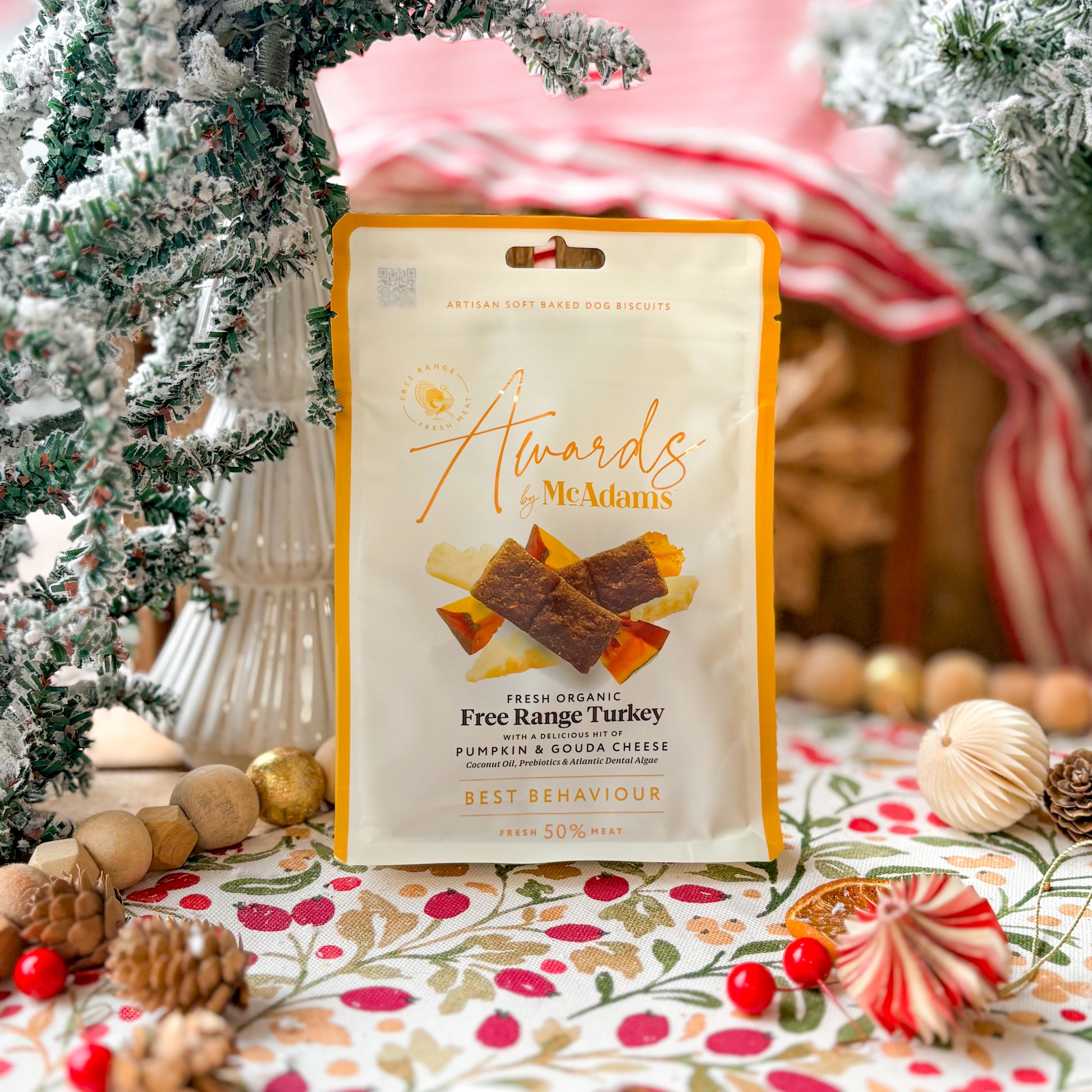 Soft baked and crafted with care, these artisan treats blend 50% organic free range turkey with wholesome veggies for a delicious, natural reward your doggo will love.