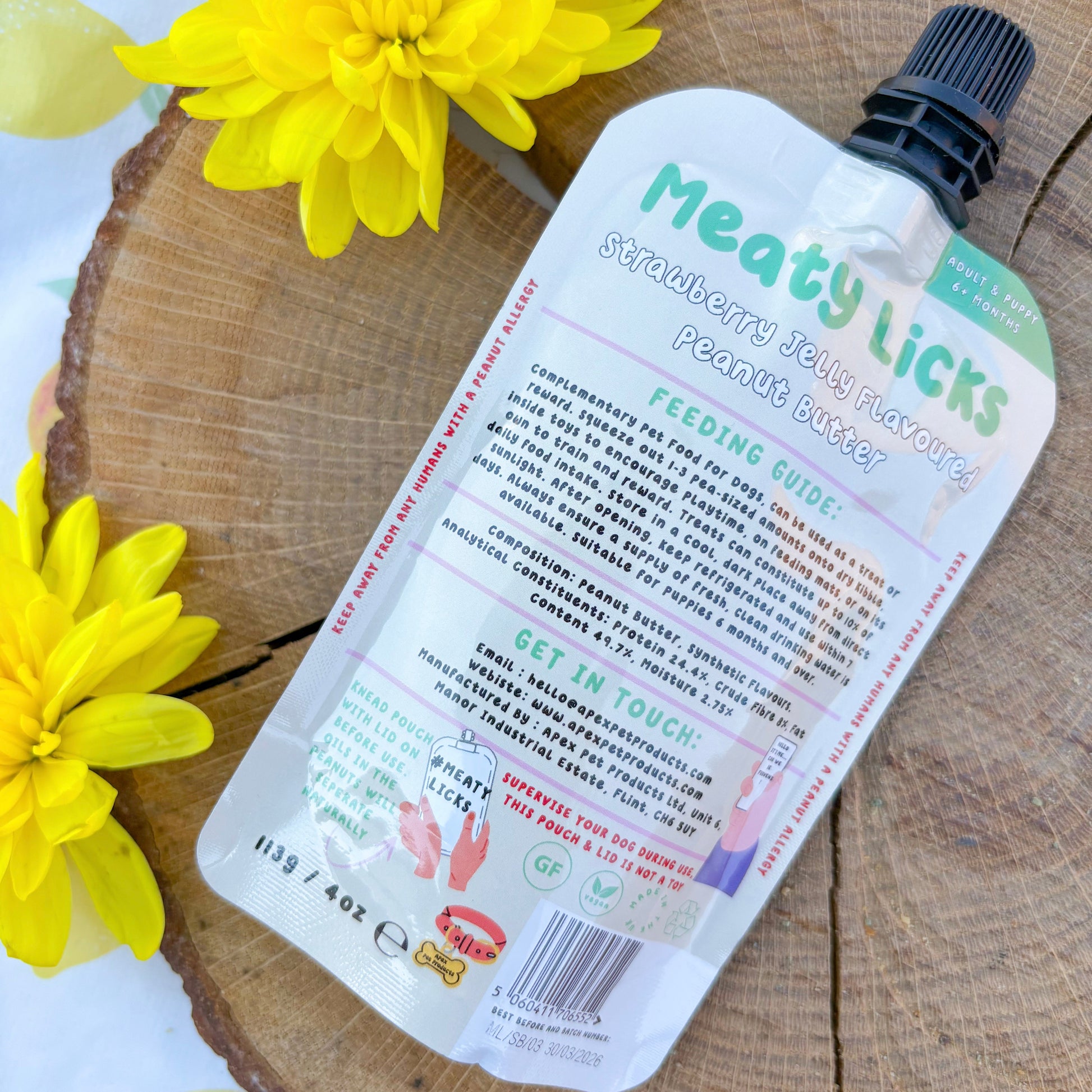 This juicy little number brings together the classic combo of peanut butter and strawberry jelly – but made just for doggos! Perfect for training, enrichment, or spreading on lick mats, this pouch is as tasty as it is tummy-friendly.