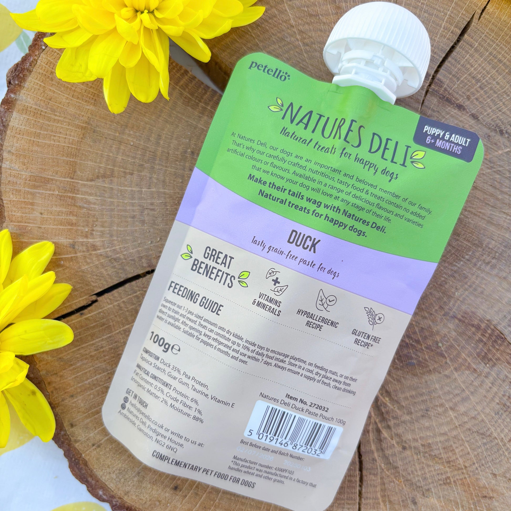 Smooth, savoury, and seriously satisfying – this Duck Paste Pouch from Natures Deli is a grain-free, gluten-free, and hypoallergenic treat your pup will love! Whether you're training, enriching, or just showing a little extra love, this easy-squeeze pouch makes it effortless.