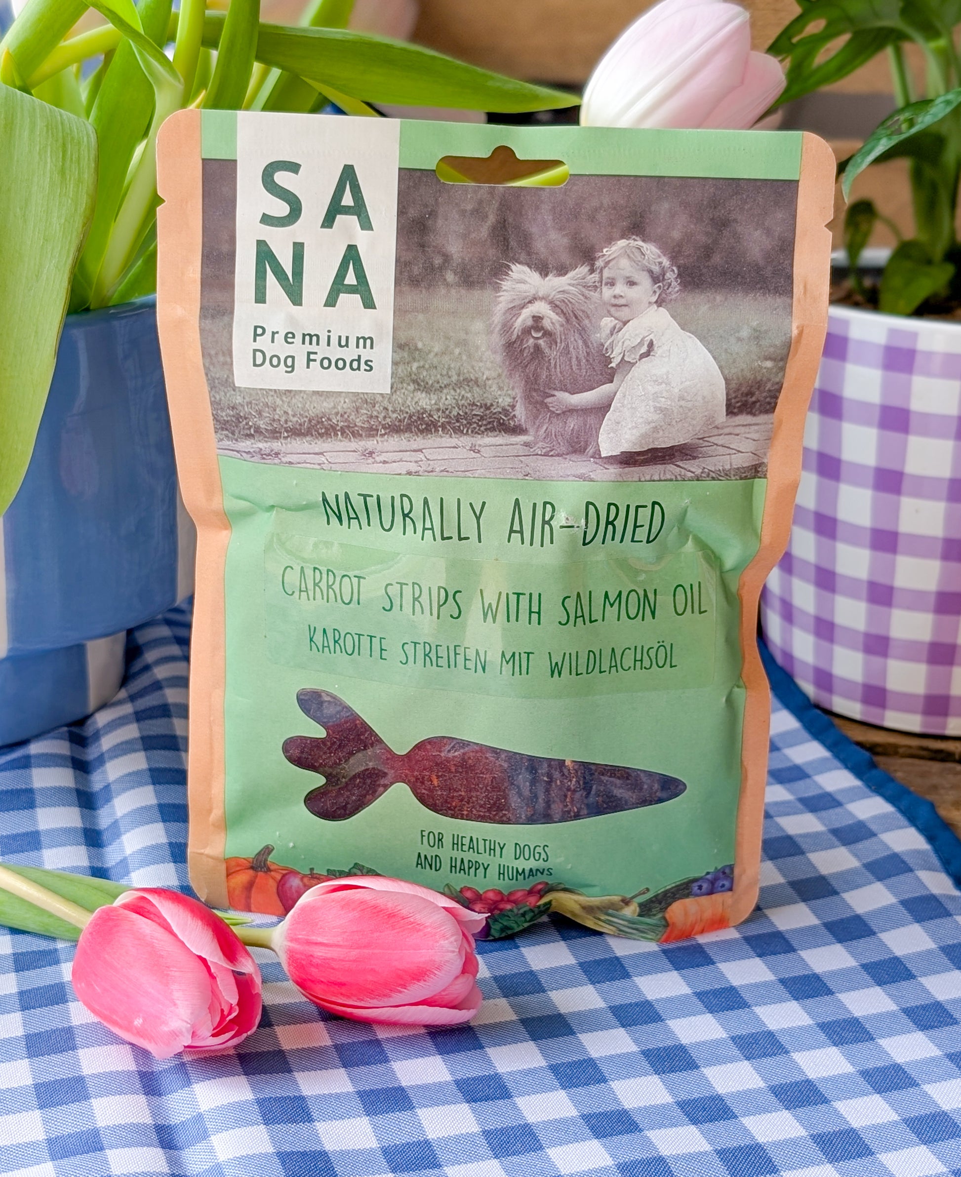Sanadog Air-Dried Carrot Strips With Salmon Oil look like meat and taste just as delicious, but are made from healthy carrots with added salmon oil for an extra boost.